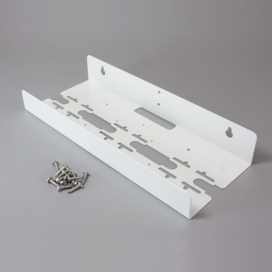 Aluminum mounting bracket with fourteen screws: twelve for attaching the filter housing to the mounting bracket and two for attaching the bracket to a wall.